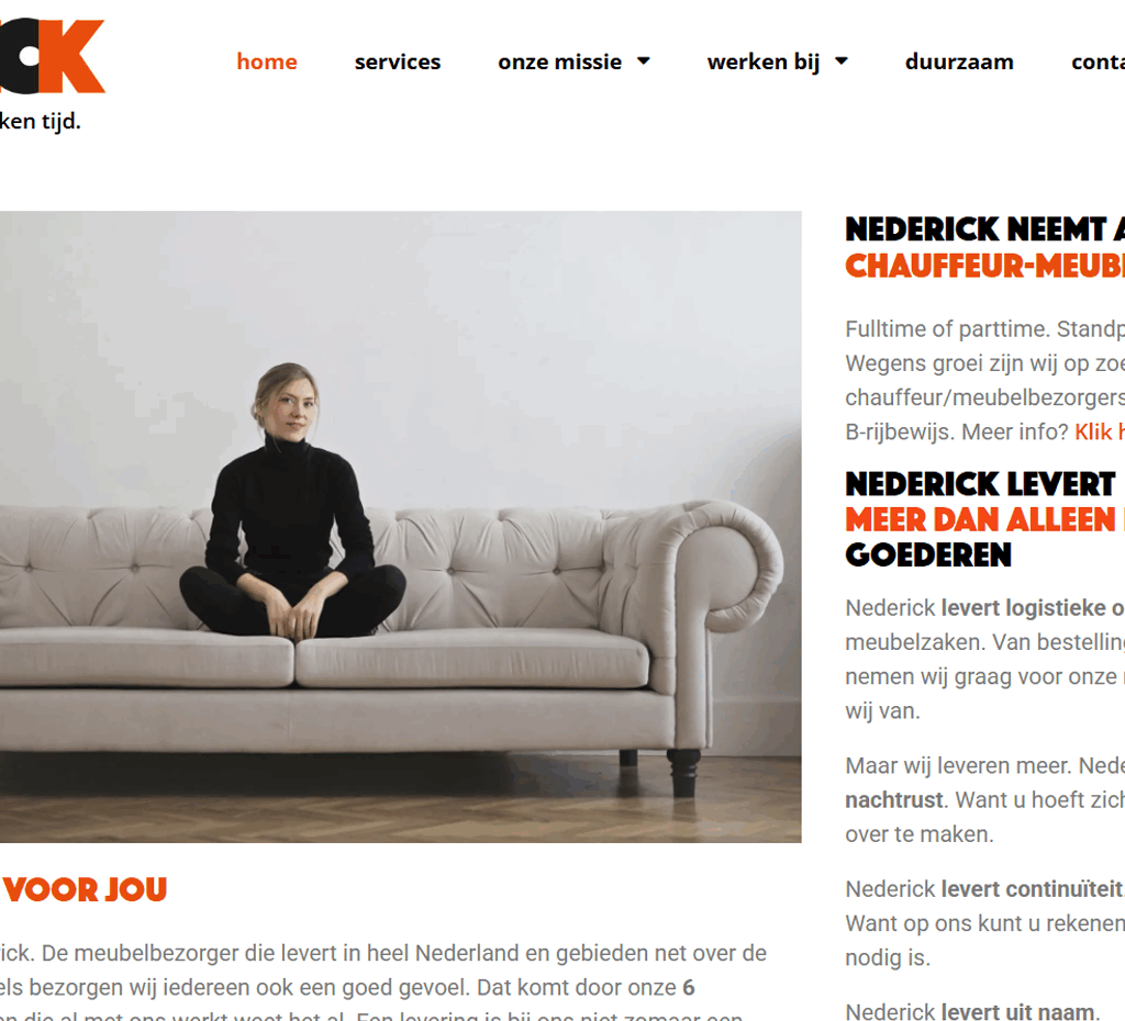 Nederick operates in a highly competitive logistics market where reliability, efficiency and trust are decisive. The organisation provides specialised furniture logistics services for retailers, interior professionals and project-based clients across regions and borders.