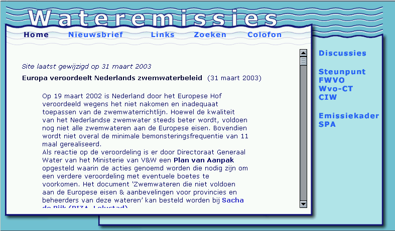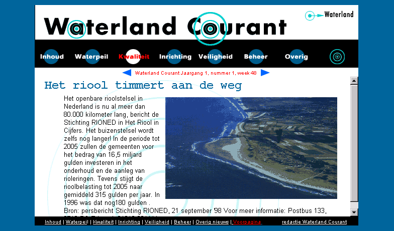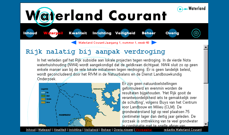 In 2000, Waterland.net received the Webwijzer Award, presented by Minister Van Boxtel. The jury praised the site for its design, relevance and its unique role as an overarching platform connecting multiple institutions.
